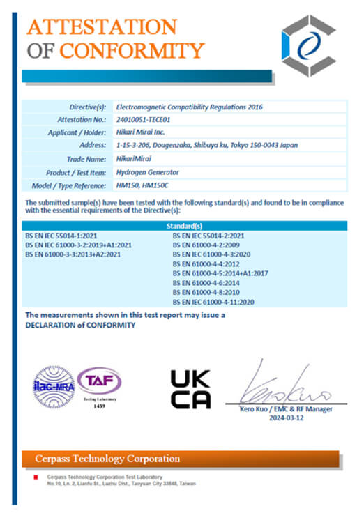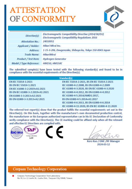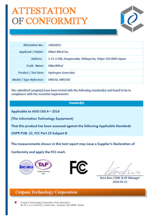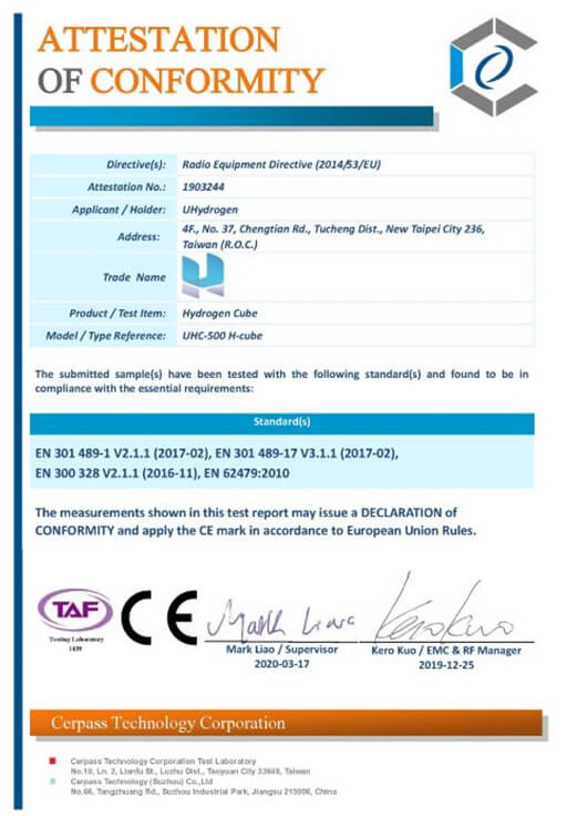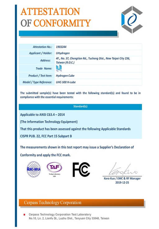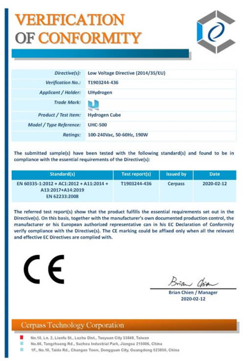 我們將秉持著高標準,為全球客戶提供更優質、更可靠的產氫商品,以最負責任的態度確保通過各國家地區的安規要求並取得整機認證,讓您真正放心使用。
